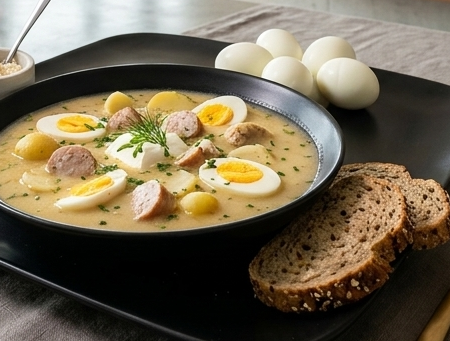 Zupa chrzanowa z jajkiem i białą kiełbasą