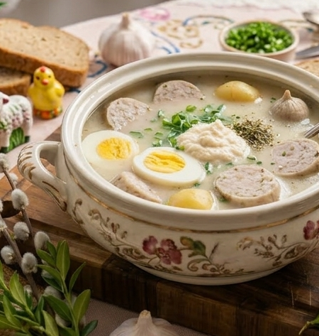 Barszcz biały z kiełbasą i chrzanem – tradycyjna zupa wielkanocna